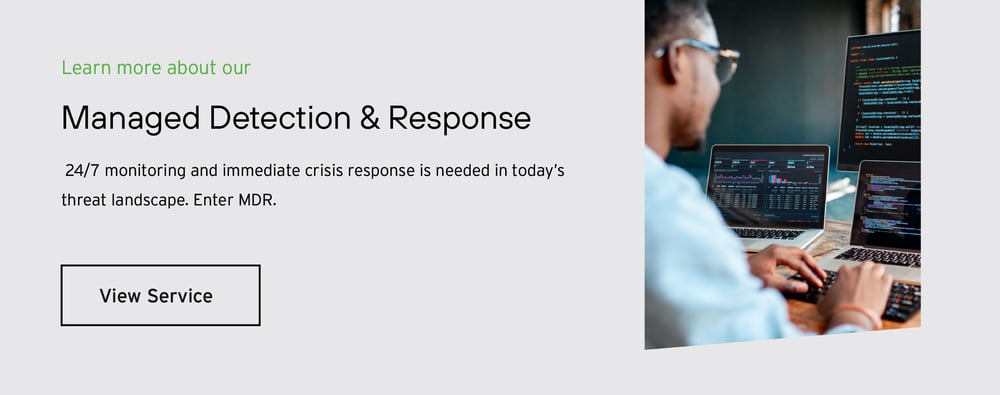 Threat monitoring, detection and response (MDR) services offer businesses turnkey security operations center (SOC) capabilities remotely to quickly detect, analyze, investigate, and respond to threats either through containment or disruption. Data is logged and analyzed by skilled cybersecurity experts in incident detection and response services that are available 24/7.